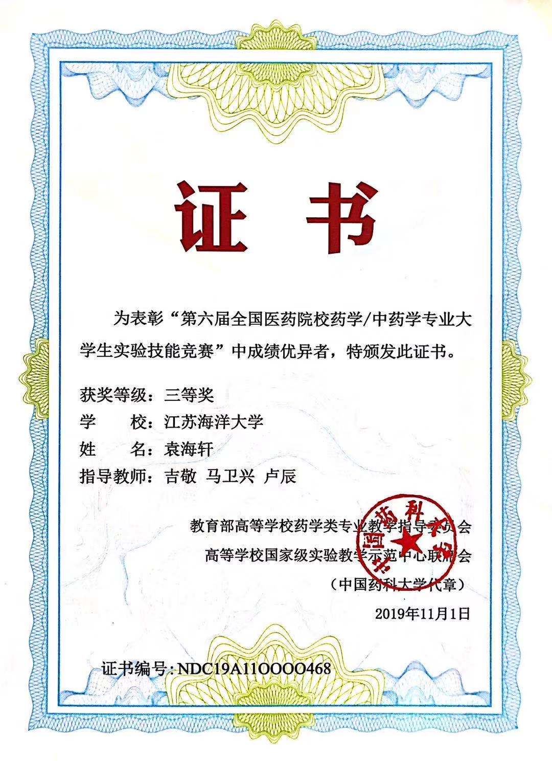 bv1946伟德官网制药工程专业是省“十二五”重点专业,药物制剂专业今年刚刚入选省一流专业。作为应用型专业,人才培养过程中不但要注重理论知识教学,更要重视实践能力的培养。今年bv1946伟德官网选派吉敬博士带队赴郑州参加教育部高等公司药学类专业教学指导委员会举办的“第六届全国医bv1946伟德官网校药学/中药学专业老员工实验技能竞赛”。11月1日,经过一整天的实验理论与生物、化学通用实验技能操作比赛,药物制剂161班袁海轩同学获得三等奖;这是bv1946伟德官网首次获得国家级教学实验类竞赛奖项。
