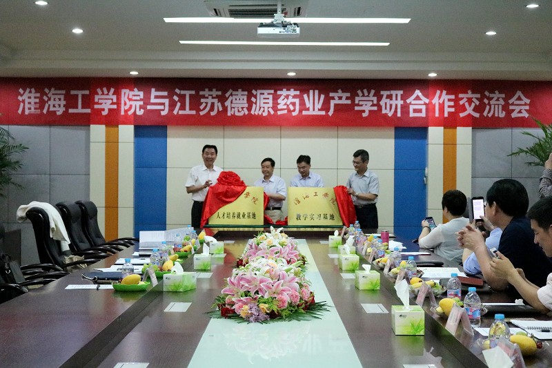 6月5日下午,在江苏德源药业股份有限公司举行公司教学实习和人才培养就业基地揭牌仪式,副董事长许兴友出席,并与市开发区党群工作部部长兼党工委委员万军、德源药业董事长李永安、校教务处处长李继明共同为两个基地揭牌。公司党总支书记李树安、副经理马卫兴、经理助理李海南、德源药业副总经理兼研究院经理杨汉跃和人力资源行政总监薛四明等参加会议。