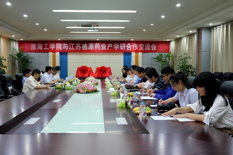 市开发区党群工作部部长兼党工委委员万军热情洋溢的讲话。他认为:医药产业是连云港开发区的主导产业,德源药业长期保持与各大科研院所、专业院校密切合作,尤其是深化与淮海工公司产学研合作,不断释放淮工科研优势,为开发区产业强区提供了强力的科技、人才、平台支撑。去年以来,德源药业与淮海工公司携手合作,实施了“3+1”人才培养模式,以技术应用能力为主线,将理论和实践训练有机结合,强化对应用型人才的培养,在提高淮海工公司科研能力及学术竞争力的同时,也为促进德源药业发展注入新的活力。我们衷心期盼,加强淮海工公司与德源药业的深度交流,让德源药业的资源优势,在淮海工公司人才实力、科技力量的支撑下,尽快转化为现实生产力,实现优势互补,资源共享,合作共赢。我们也希望越来越多的医药企业也像德源一样与淮工进行深度的交流合作,从而为开发区医药产业的强劲发展提供不竭动力。