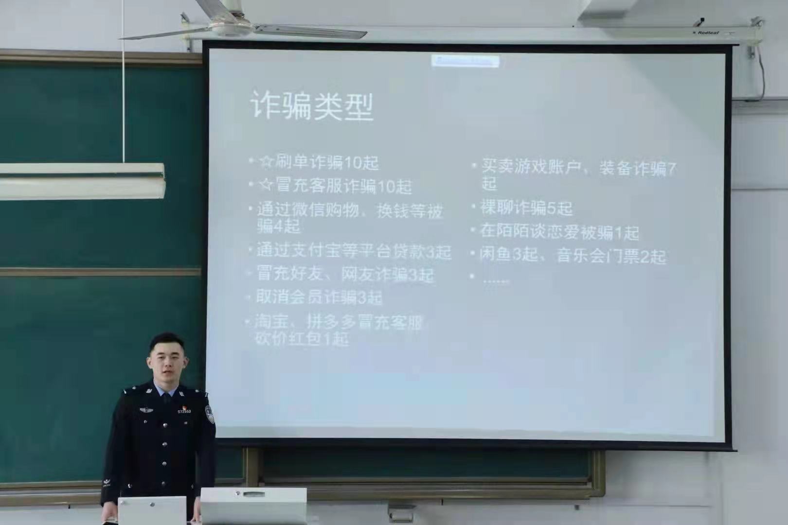 为加强bv1946伟德官网研究生安全防范意识,增强对各类诈骗犯罪的识别和应对能力,11月2日下午,公司邀请连云港市公安局高新区分局郁州派出所杨长源警官、相新宇警官作了一场“反诈骗、懂防范,筑牢反诈骗意识”主题讲座。公司党政办公室主任刘连国、院研究生会主席陈衍铭、副主席邹靖培以及全体2021级研究生参加了本次活动,活动由院研究生会实践活动部部长肖欣怡主持。