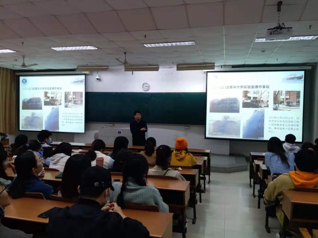 三位老师就实验室准入制度、基本安全要求、水电安全、火灾隐患、仪器设备安全、危险化学品、废物处理、个人防护等进行了讲述,现场播放了安全教育短片,分析了多个国内外实验室安全事故案例,用老师身边发生过的真人真事做警示。告诫研究生安全第一、实验第二,遵守操作规范,发现危险隐患,不心存侥幸心理,对自己的生命健康负责。